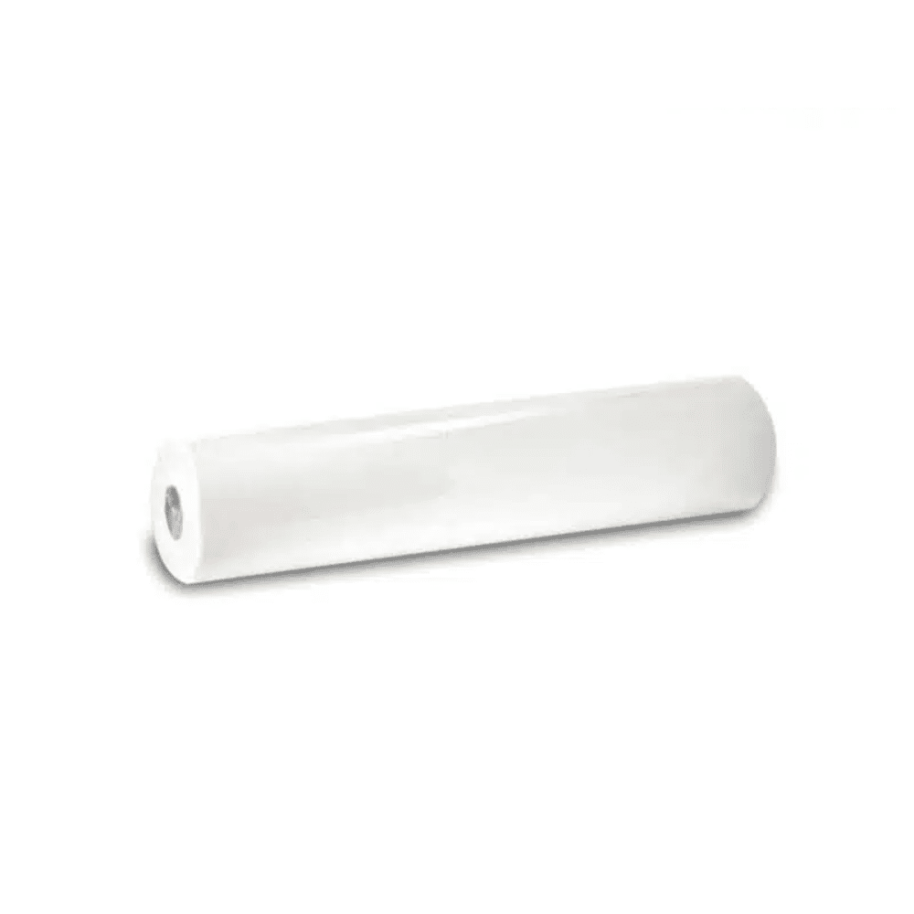 Eine Ärzterolle / Liegenabdeckung aus Papier, 2-lagig, Farbe Weiß, mit 50 Meter Lauflänge und Abrissgröße 59,5 cm x 36 cm.