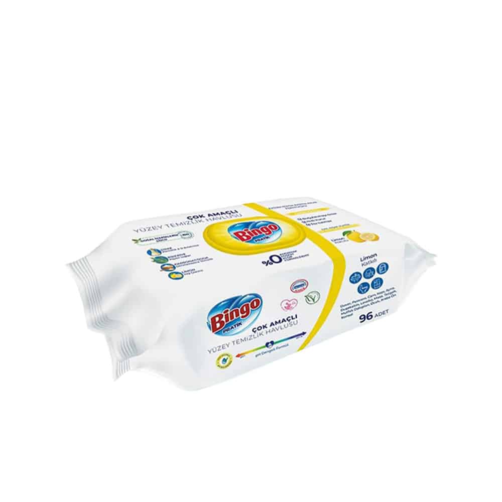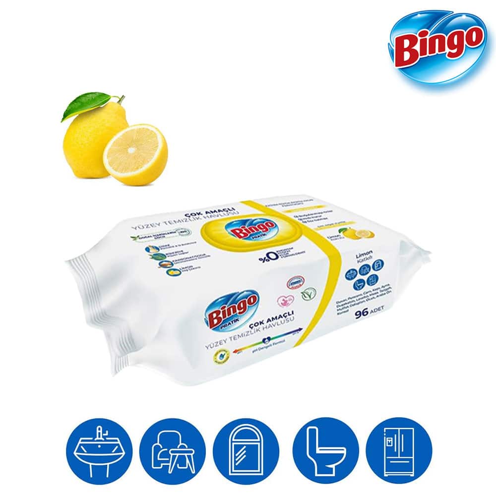 Mit 96 Tüchern pro Packung bieten die Bingo Pratik Reinigungstücher eine langanhaltende Reinigungslösung, die schnell und effizient wirkt und gleichzeitig einen angenehmen, sauberen Duft verbreitet.