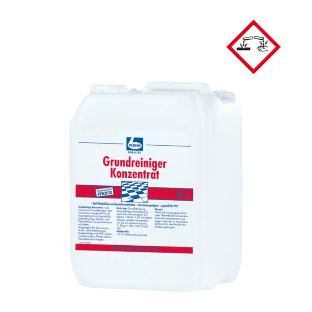 Dr. Becher Grundreiniger Konzentrat ist ein effektiver Grundreiniger, der speziell als schaumarmes Konzentrat formuliert wurde. Er entfernt mühelos und gründlich mehrschichtige Wachs- und Polymerfilme sowie Emulsionsschichten.
