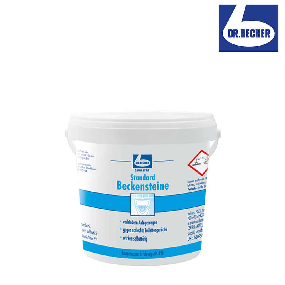 Dr. Becher Standard Beckensteine sind hochwirksame Reinigungsprodukte für die tägliche Reinigung und Frische in Toiletten- und Sanitärbereichen. Sie sind speziell entwickelt, um hartnäckige Verschmutzungen zu entfernen, unangenehme Gerüche zu bekämpfen und eine langanhaltende Frische zu gewährleisten.