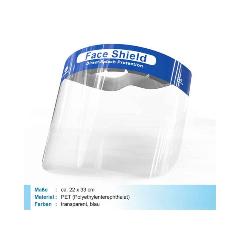 FACESHIELD Gesichtsschutz mit Anti-Fog Beschichtung bestehen aus einer Einheit (Kopfband und Folienschild), somit entfällt die Montage und das Schutzvisier ist sofort gebrauchsfertig. Das Face Shield ist innen und außen Anti-Fog behandelt und ermöglicht das komfortable Tragen von Korrekturbrille und Mundschutz darunter. Durch das elastische Befestigungsband passt sich der Gesichtsschutz an jede Kopfform an und gewährt, dank der weichen Schaumstoff-Polsterung im Stirnbereich, einen hohen Tragekomfort.