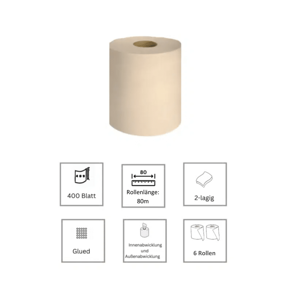 - Papierhandtuchrollen Naturfarbe