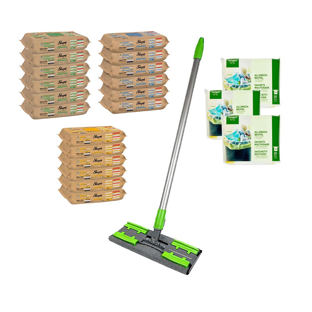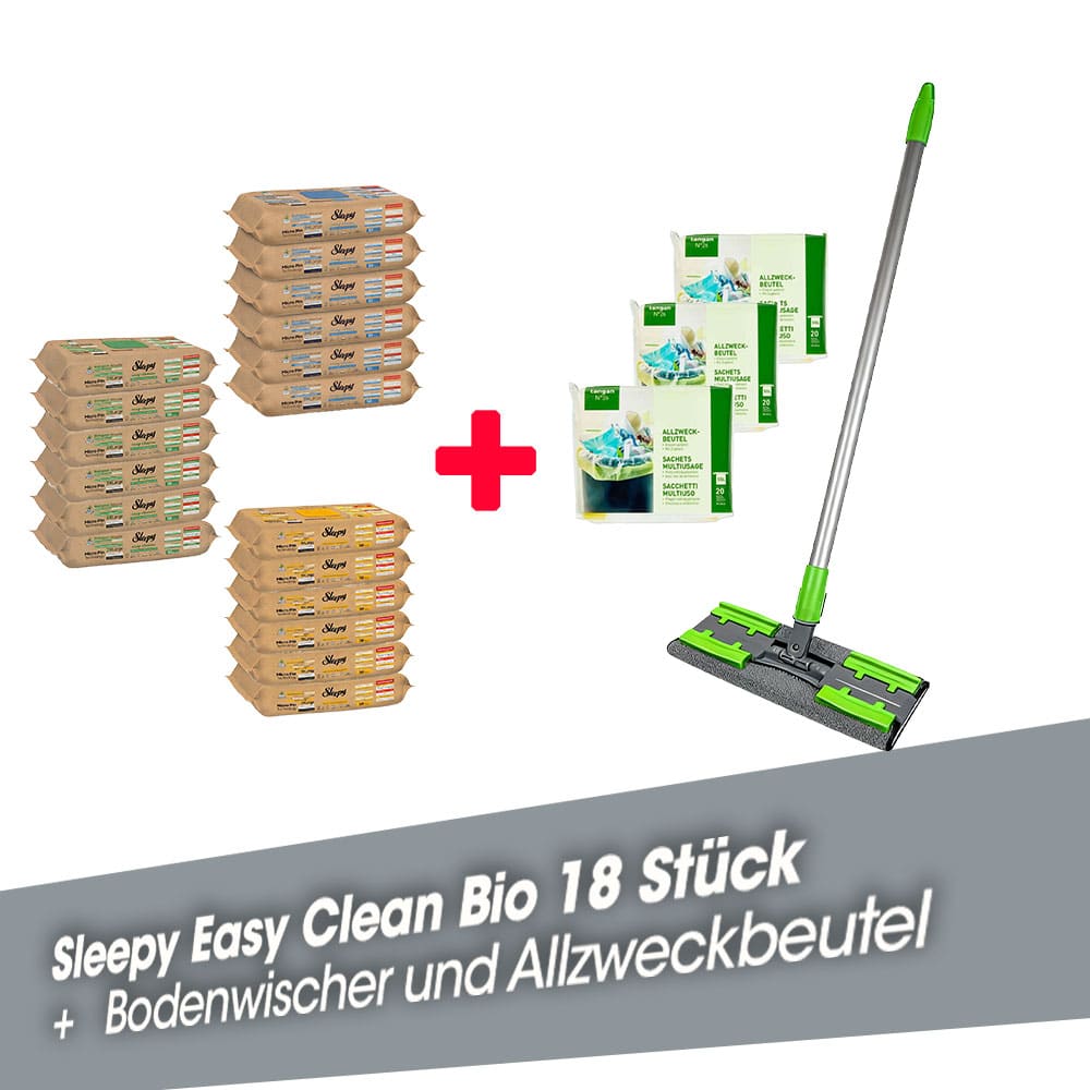 Kombiangebot Sleepy Easy Clean Bio Reinigungstücher, Allzweckbeutel und Bodenwischerset