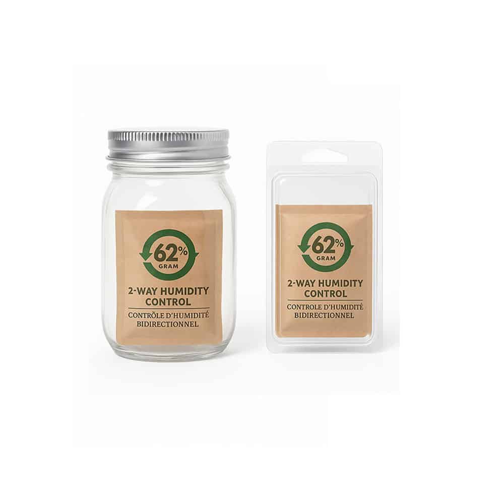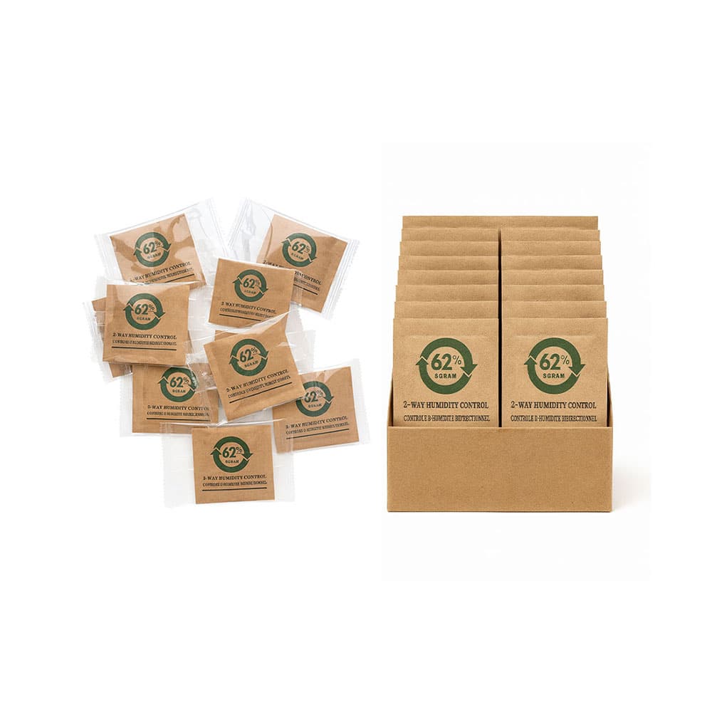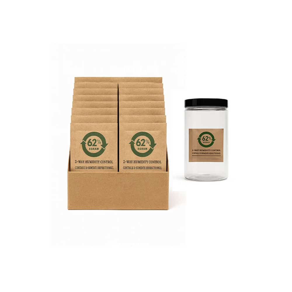 Der Luftfeuchtigkeitsregulator 2-Wege-Feuchtigkeitskontrolle 62% hält die relative Luftfeuchtigkeit in einem geschlossenen Behälter konstant, und er hilft dadurch, empfindliche Naturprodukte bei der Lagerung besser zu schützen. Der Beutel arbeitet automatisch, und er reguliert Feuchtigkeit in beide Richtungen – je nach Bedarf.