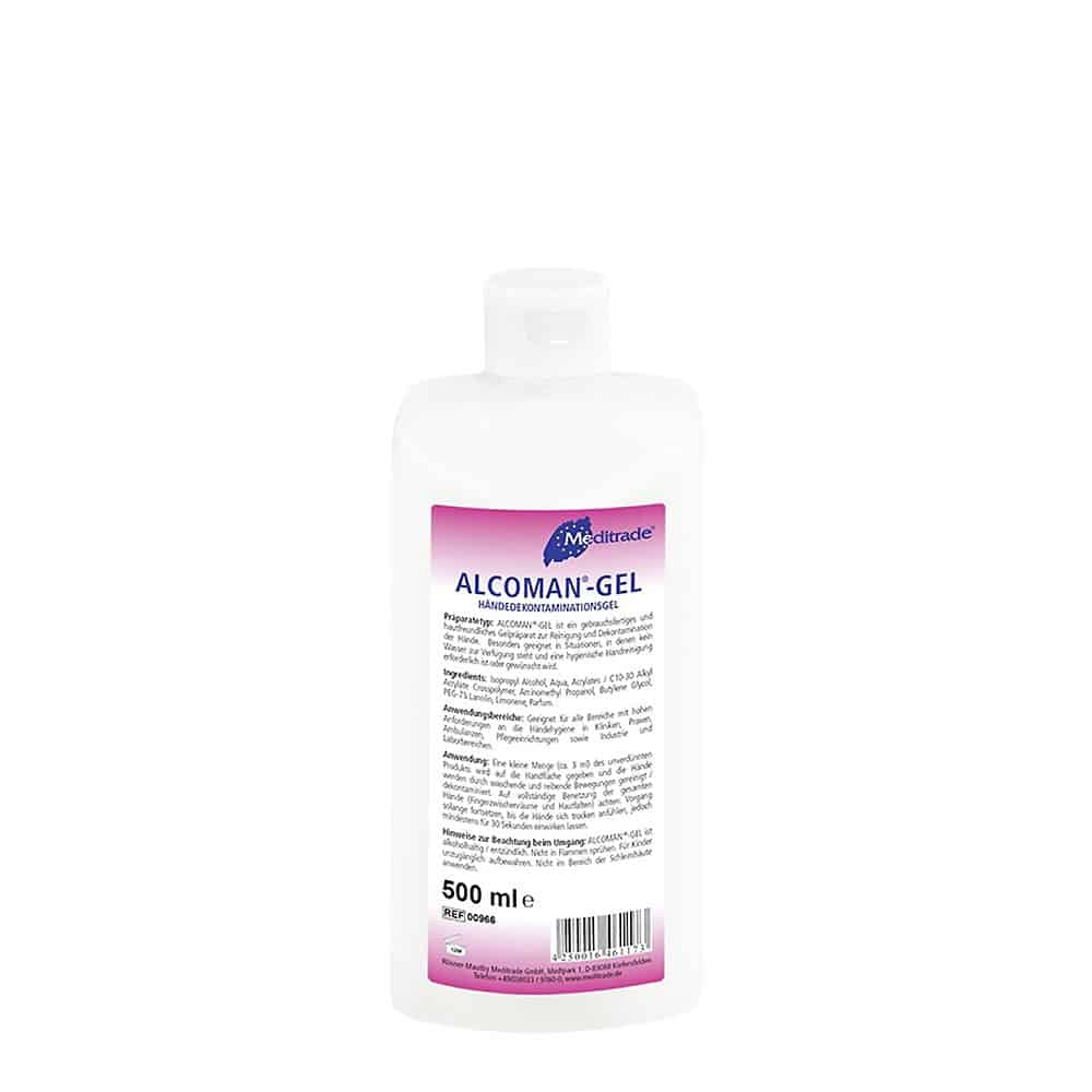 Meditrade ALCOMAN Handdesinfektions-Gel ist ein gebrauchsfertiges und hautfreundliches Gelpräparat zur Reinigung und Dekontamination der Hände. Das Produkt eignet sich für alle Bereiche mit hohen Anforderungen an die Händehygiene in Kliniken, Praxen, Ambulanzen, Pflegeeinrichtungen sowie Industrie und Laborbereichen. Ideal für mobile Tätigkeiten und in Situationen, in denen kein Wasser zur Verfügung steht und eine hygienische Handreinigung erforderlich ist oder gewünscht wird.