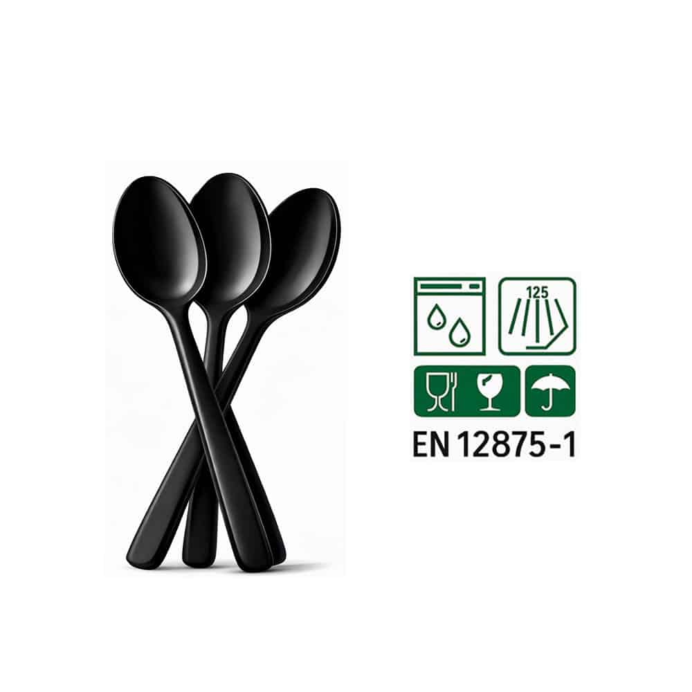 Mehrweg Löffel Schwarz 18 cm – 100 Stück, spülmaschinengeeignet