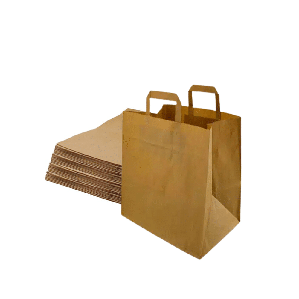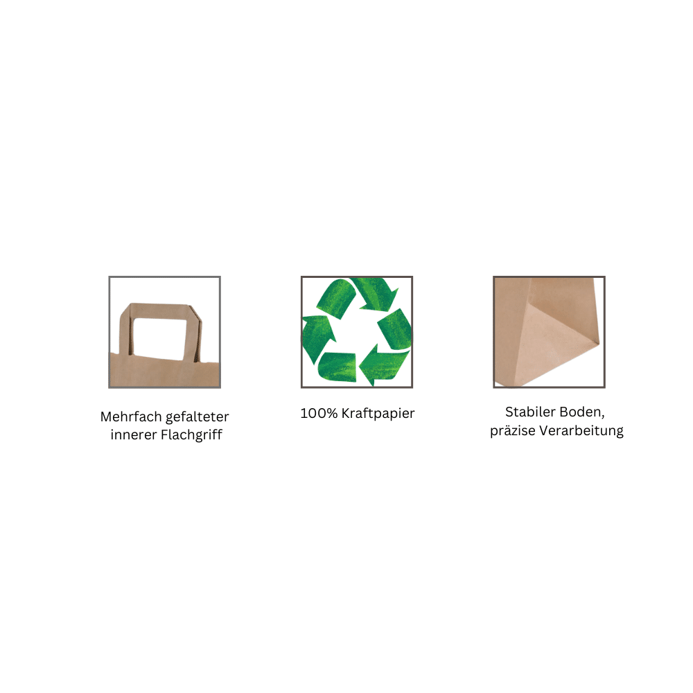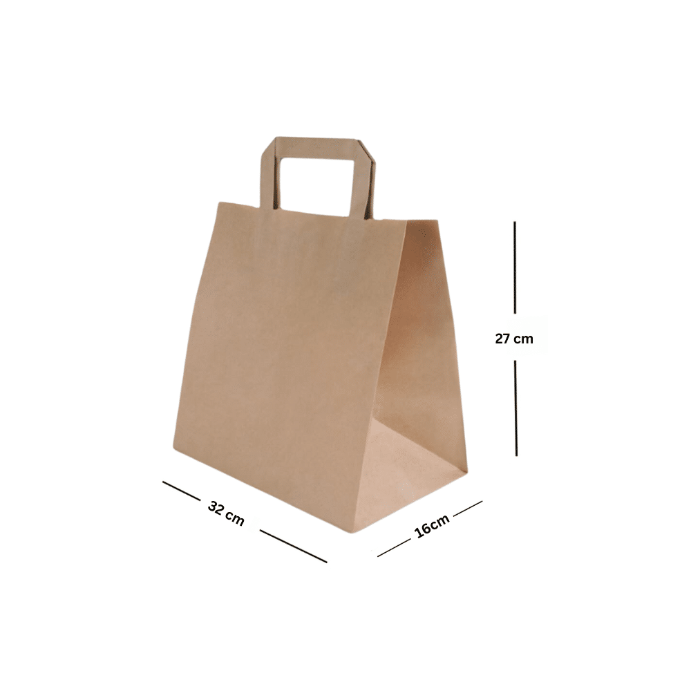 Die Papiertragetasche mit den Maßen 32+16×27 cm besteht aus stabilem Kraftpapier