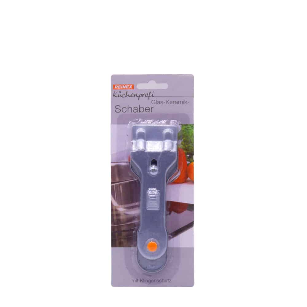 Der REINEX Glas-Keramik-Schaber unterstützt die Reinigung von Kochfeldern,