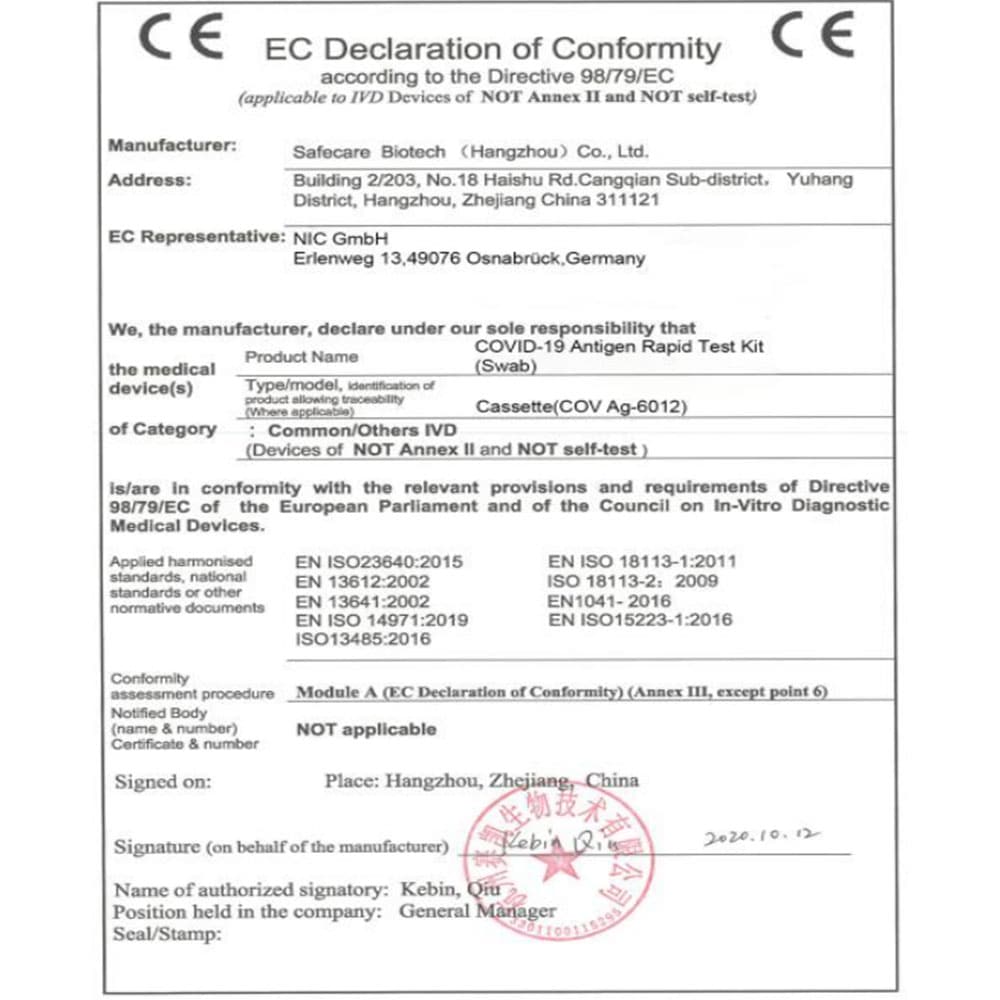5 Rezensionen für Safecare COVID-19 Antigen Rapid Test Kit Nasal Swab | MHD 10.2027 | 1 Stück