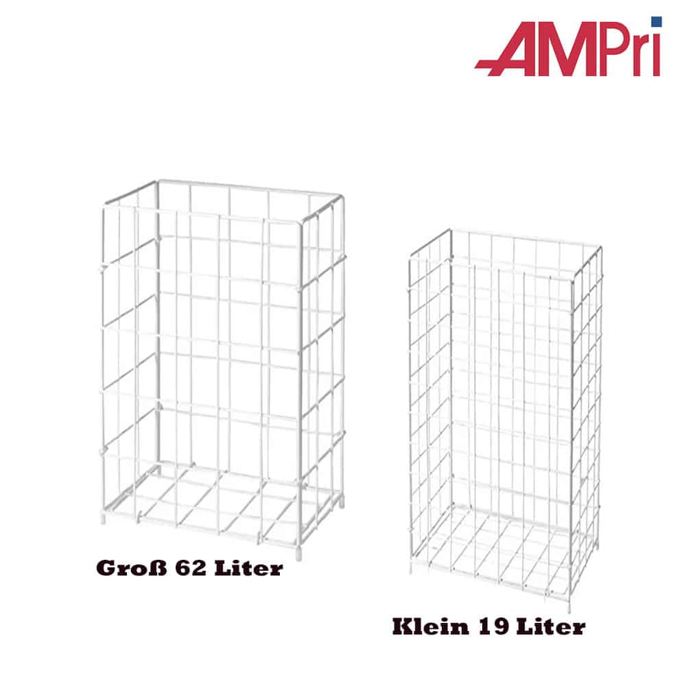 Der AMPri Sammelkorb aus weißem Drahtgeflecht ist eine praktische Lösung zur Entsorgung von Papierhandtüchern